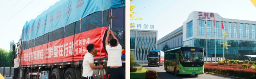 從區(qū)域品牌到全國領(lǐng)先,一路成為農(nóng)業(yè)產(chǎn)業(yè)化國家重點龍頭企業(yè),三胖蛋的成長路上,始終離不開家鄉(xiāng)的支持和關(guān)懷。帶著向日葵“一生向陽”的韌勁,挺身而出,用愛心物資搭起溫暖的橋。
