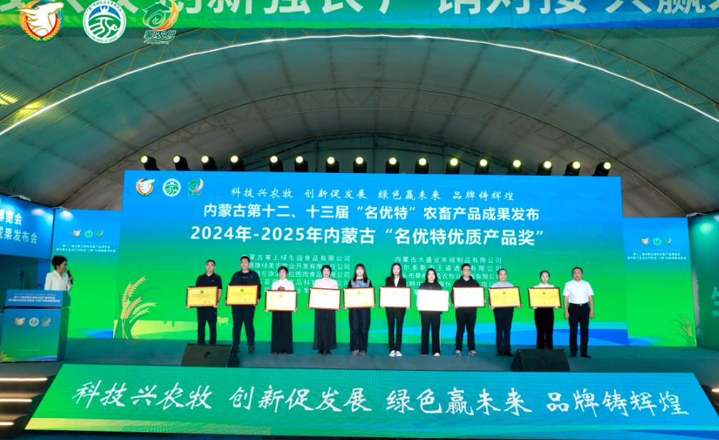 發(fā)布會上自治區(qū)農(nóng)牧廳二級巡視員侯雁冰、畜牧局局長紅海、自治區(qū)人民政府駐上海辦事處黨組書記、主任李志剛、自治區(qū)農(nóng)牧廳鄉(xiāng)村產(chǎn)業(yè)發(fā)展和農(nóng)墾處處長邢瑞、農(nóng)畜產(chǎn)品質(zhì)量安全中心副主任云巖春、協(xié)會會長徐建忠、內(nèi)蒙古綠色與有機食品協(xié)會常務副會長、高級顧問邢黎明為獲得第十二、十三屆名優(yōu)特認證的企業(yè)頒發(fā)獎牌并合影留念。