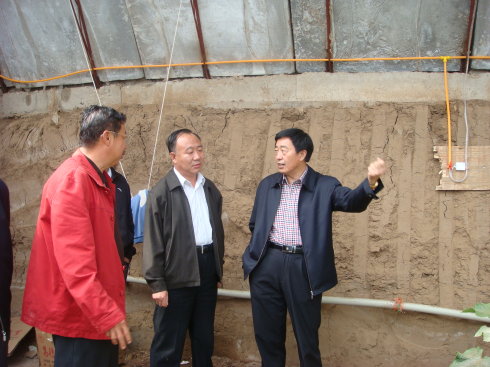 呼市政府高副市長(右一)、畢克齊鎮(zhèn)黨委(中)姜書記在基地越冬暖棚內(nèi)