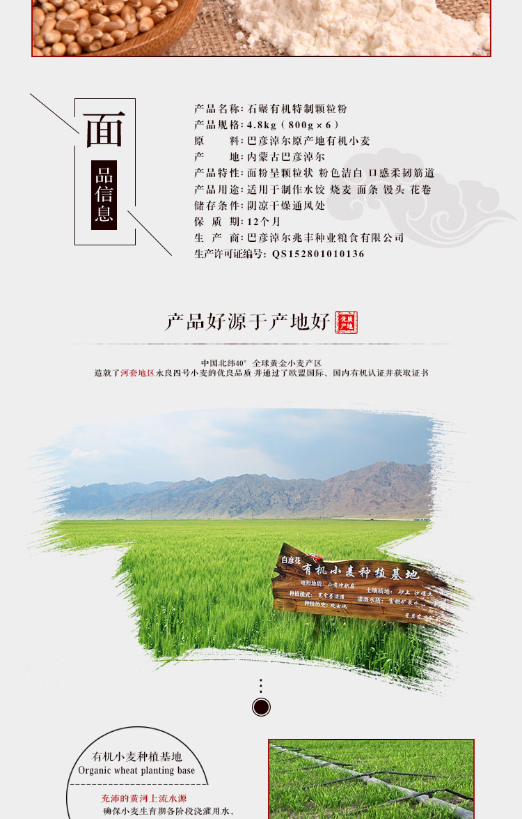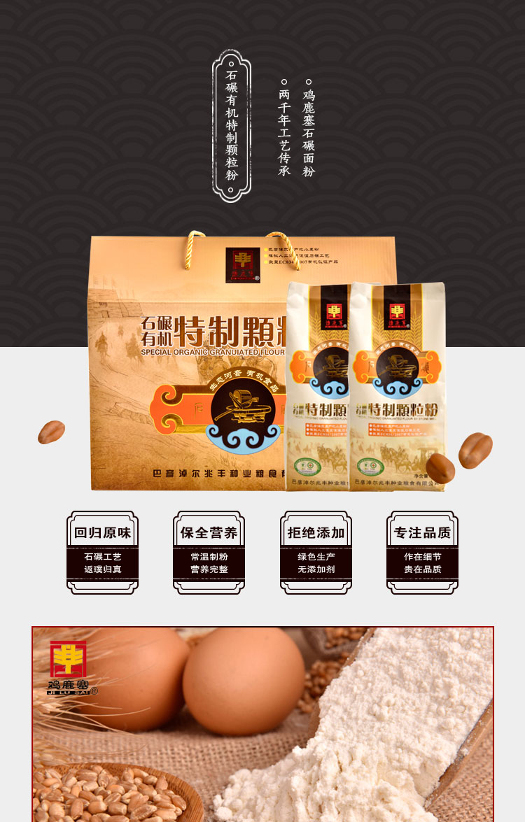 雞鹿塞 石碾有機(jī)特制顆粒粉 精品禮盒 4.8kg 河套面粉 餃子粉