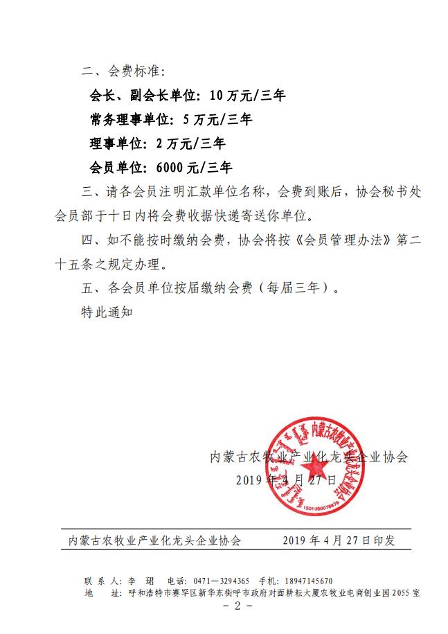 農(nóng)產(chǎn)協(xié)會字[2019]8號 關于收繳會費的通知